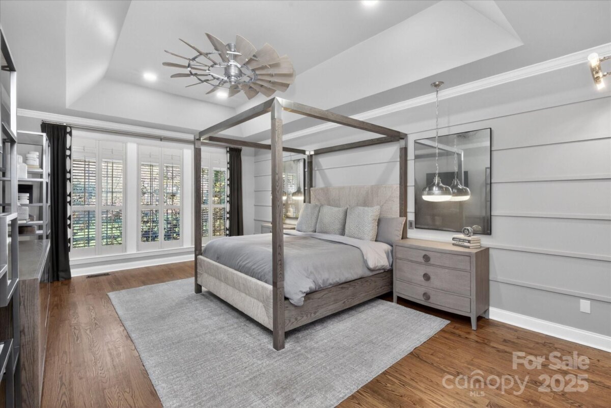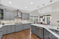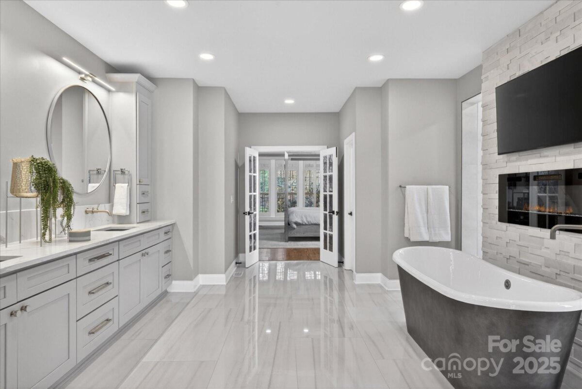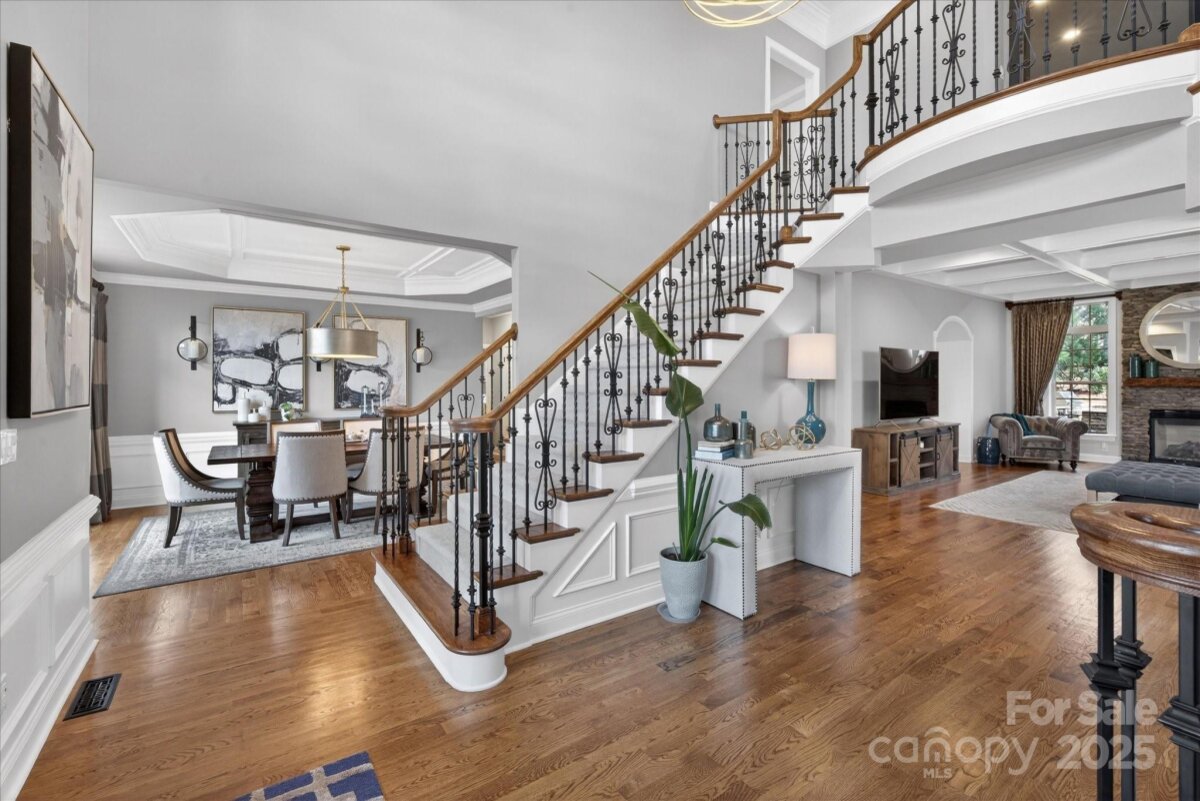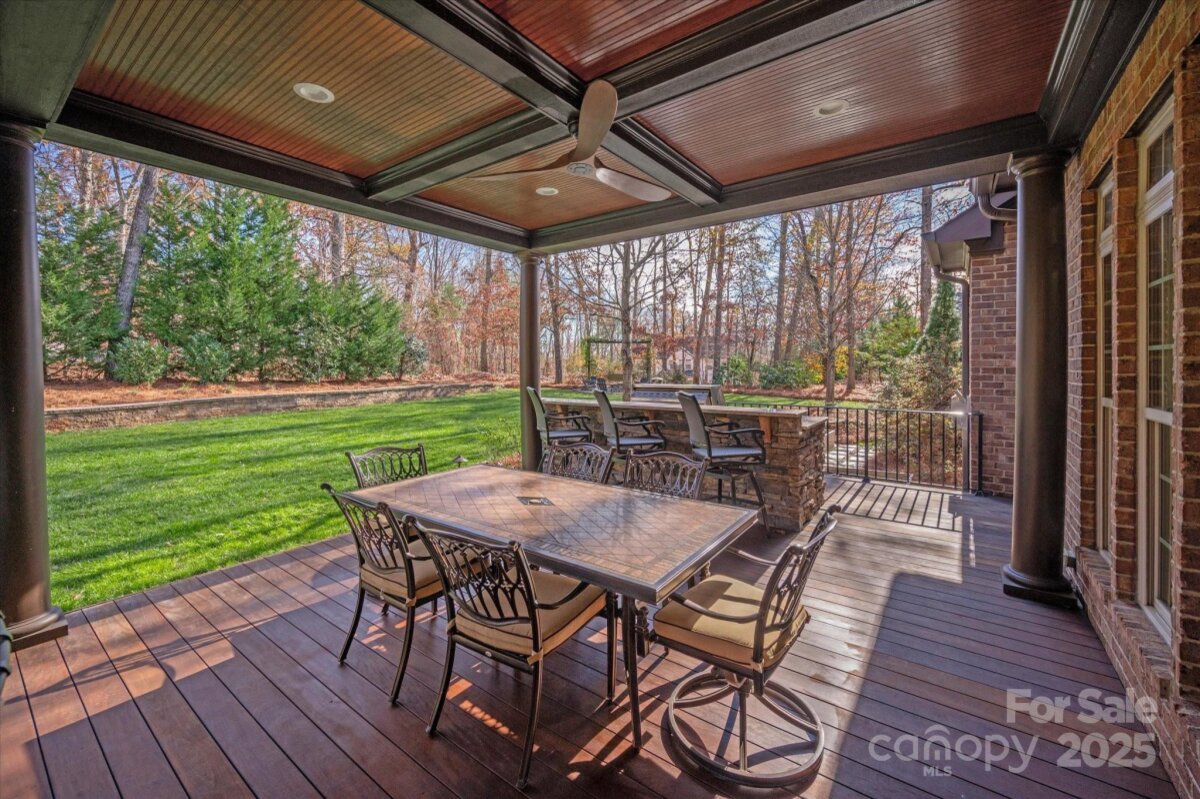 Exquisite custom home loaded with stylish updates! The main-level primary suite is a showstopper with its newly renovated spa bath with an oversized walk-in shower, gorgeous free-standing tub nestled beside a glowing fireplace, and an unbelievable tailored closet. Stunning kitchen with quartz counters and a cozy keeping room flows into the great room with a beautiful stone fireplace. A grand dual staircase and gleaming hardwood floors provide a warm and grand welcome into the foyer. Step outside to an incredible covered porch featuring a wood-burning fireplace and outdoor kitchen area with built-in grill and smoker, overlooking a private backyard with firepit. Upstairs features a custom-finished billiard room with floating wood floors and a spacious bonus room with brand new carpet. Home boasts accented walls and ceilings, arched windows with lots of natural light, beautiful hardwoods on main level and new carpet upstairs. Located in sought-after Weddington school district in a charming neighborhood close to every day conveniences.