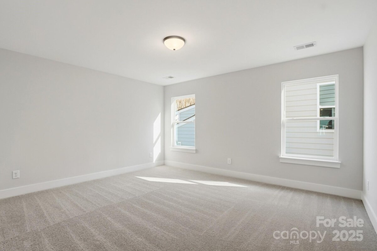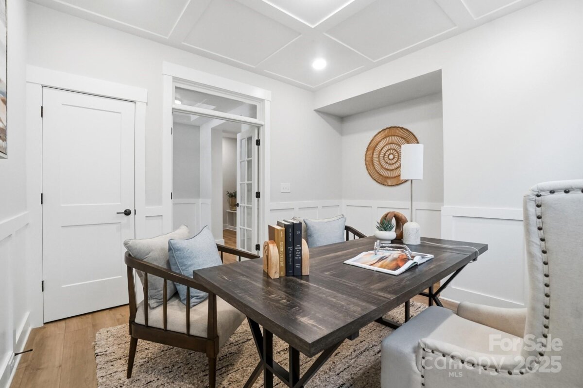 Discover the ease of low-maintenance living in this beautifully designed ranch-style home, featuring an additional half story upstairs complete with a bedroom, full bathroom and a loft. The Mayfair plan features an open kitchen with breakfast area that leads into the family room. The designer kitchen includes white cabinets with matte black hardware, quartz countertops and stainless appliances, including a gas cooktop, designer range hood and wall oven. The primary bedroom has a tray ceiling as well as a luxury shower in the primary bath. One additional bedroom and an office are also featured on the main floor. This home combines the luxury of brand-new construction with thoughtful amenities including lawn care and conveniently located walking trails. Enjoy modern living in a peaceful, well-maintained neighborhood designed for comfort and convenience.