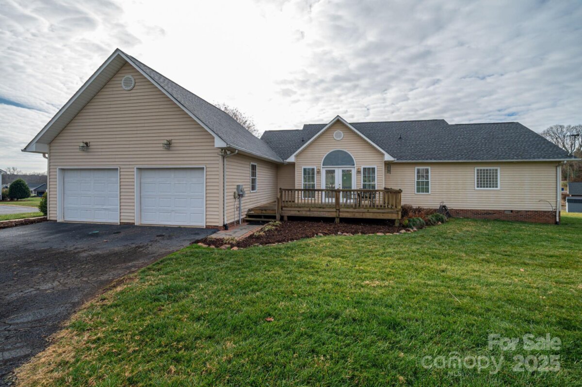 Beautiful 3-bedroom, 2.5-bath home situated on a spacious corner lot in Conover’s highly desirable St. James Vineyard! This charming property offers a wonderful blend of comfort, space, and potential. Step onto the classic rocking-chair front porch and into the bright, airy family room, where vaulted ceilings and a cozy fireplace create an inviting atmosphere perfect for everyday living or entertaining. The roomy primary suite is a true retreat, featuring oversized windows that fill the space with natural light, along with a relaxing tub, walk-in shower, and dual vanity. The open-concept layout continues into the dining area, which offers a seamless flow to the rear deck through a window-filled entry—ideal for enjoying morning coffee, hosting gatherings, or taking in peaceful views of the backyard. The spacious kitchen includes all appliances, generous cabinet storage, and room for a breakfast table. Its functional layout provides the perfect blank canvas for your desired updates, whether modern touches or timeless finishes. Located just off the kitchen, the laundry room offers additional storage space for added convenience. Outdoor living is made easy with a large rear deck overlooking the yard, giving you ample room for grilling, relaxing, or playing. The attached double garage and paved driveway provide convenient parking and storage options. Built in 2000 on a 0.55-acre lot, this home is located in the inviting St. James Vineyard community and is serviced by Claremont, River Bend, and Bunker Hill schools. With wood and tile floors throughout, this well-maintained property is a must-see for those seeking comfortable and convenient Catawba County living.