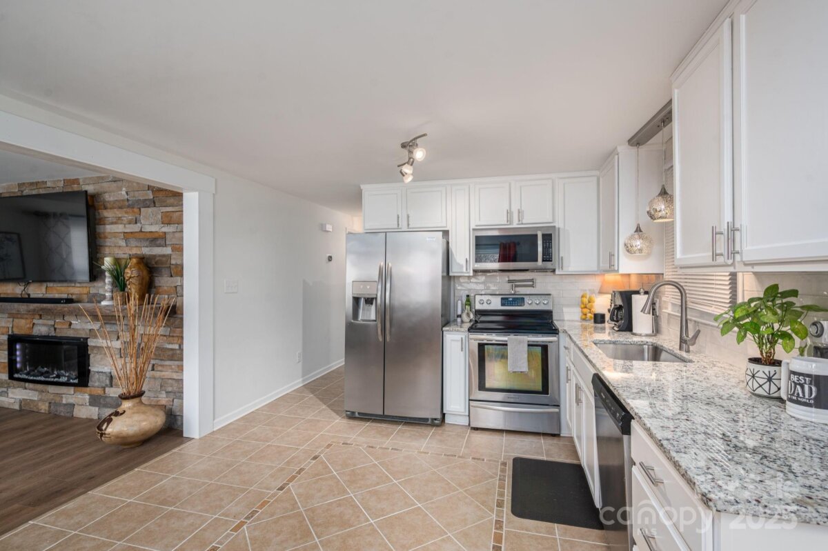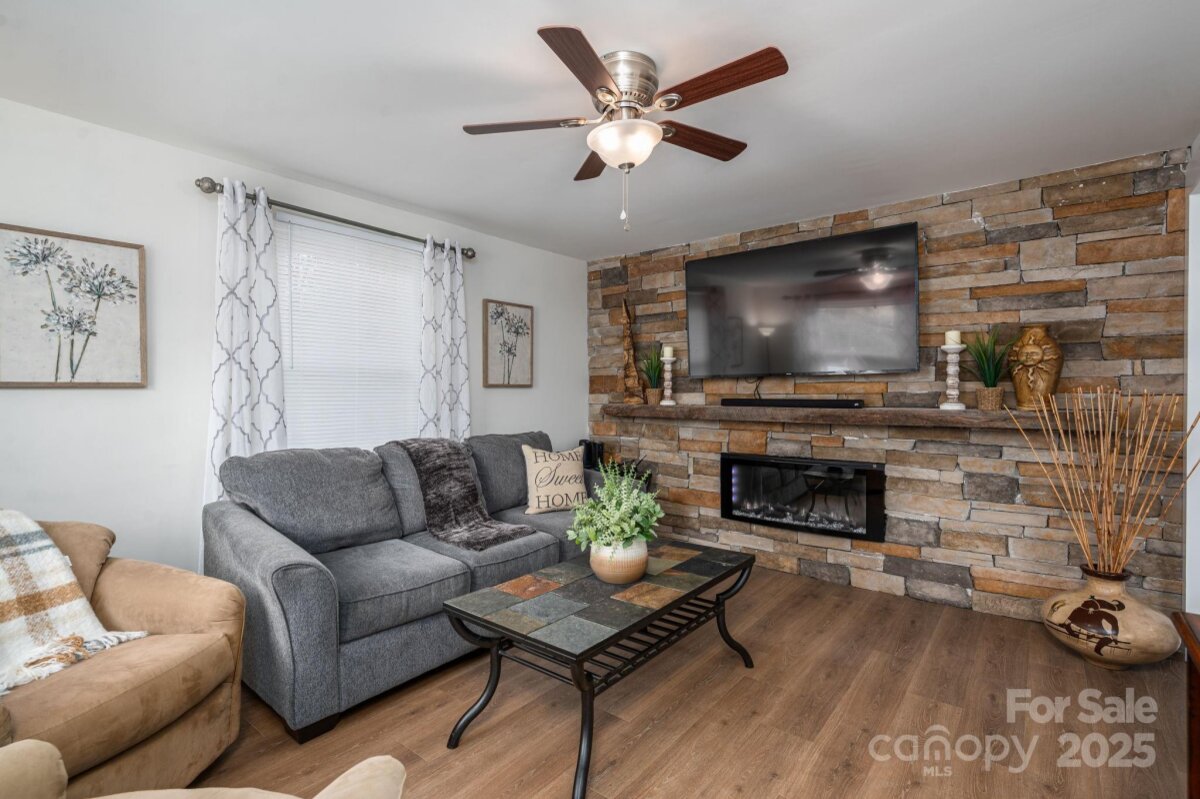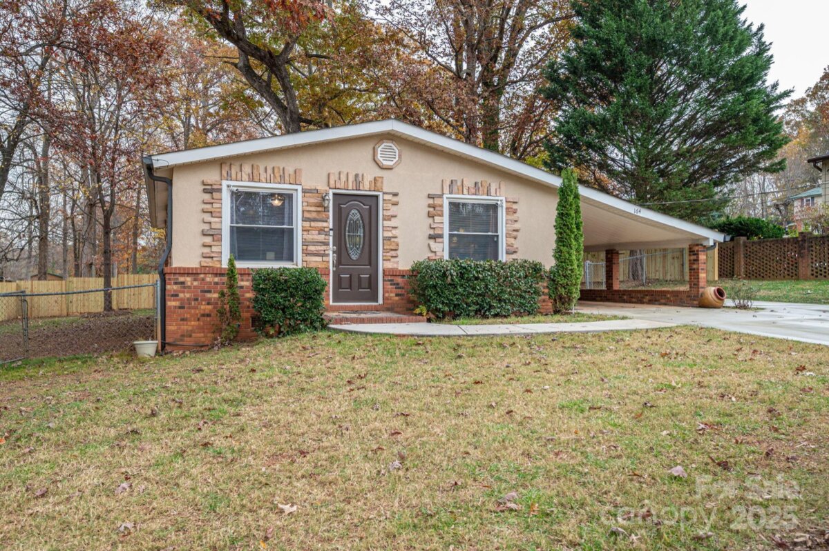 Beautifully Updated Home in the Heart of Conover! Come see this charming, well-maintained home offering small-town living with city convenience. Perfectly located near downtown Conover, within walking distance to parks, shopping, and dining, and just minutes from I-40 and Hwy 70. Step inside to a cozy den featuring a rock accent wall and an electric fireplace. The kitchen offers white cabinetry, granite counters, stainless-steel appliances, and a spacious dining area with access to the attached one-car carport—ideal for parking or storage. The primary bedroom, located at the end of the hall, provides privacy and includes a half bath. Two secondary bedrooms offer ample space, and the updated full bath features tile flooring, a tile tub/shower combo, and a large vanity. Enjoy outdoor living with a private fenced yard, brick fenced patio, and a storage building perfect for a workshop, man cave, or she shed. The oversized concrete driveway provides plenty of parking. This move-in-ready home is a must-see before it’s gone!