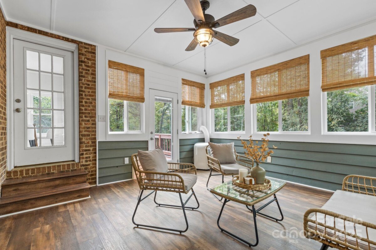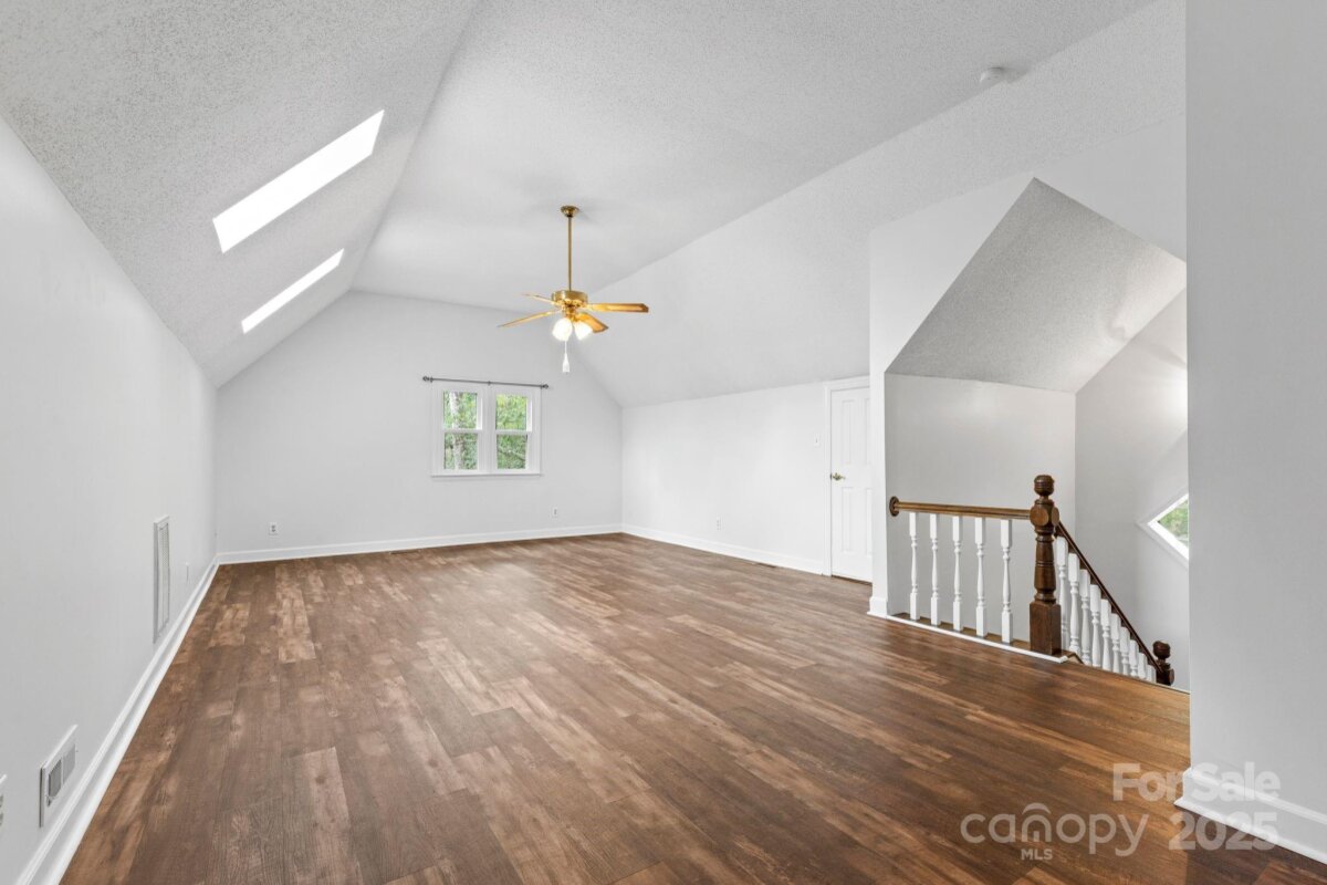 Nestled in the coveted Huntington community, this beautifully maintained 4 bedroom, 3.5 bath home blends charm, comfort, and lifestyle. The main level offers two inviting living areas, a dining room and eat-in kitchen. Upstairs, the primary suite features a spacious bedroom, walk-in closet and a beautifully renovated ensuite bath, while the two secondary bedrooms share a convenient Jack & Jill bath. A large fourth bedroom/bonus room with full bath occupies the third floor, and a finished flex room is located off the side-load garage - perfect for a home office or gym. The rocking-chair front porch sets a warm welcome, while the expansive backyard is designed for outdoor living with double decks, enclosed sun porch, fire pit, treehouse, and the cutest dog run from the top deck to the fenced backyard. Huntington residents enjoy great amenities, including a community pool and tennis/pickleball courts. The neighborhood offers a quick commute to Waverly, Arboretum, The Bowl at Ballantyne and downtown Matthews. Providence High School is also just a short mile away. With its prime location and generous living areas inside and out, this home truly has it all.