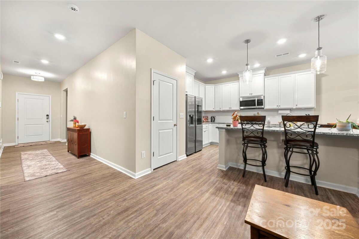 Welcome home to highly desirable Kinsley in Denver! This 3 bed 2 bath ranch with 2 car garage in a wonderful 55+ community is Move-In ready and waiting to be your next home! Open floorplan offers roomy kitchen featuring a breakfast island with pendants, stainless steel appliances, gas stove, granite, plenty of work and storage space. Large living area and dining area that opens to fenced backyard with concrete patio perfect for entertaining. Primary bedroom features lovely en-suite with dual vanity, big walk-in shower, large walk-in closet. Two more bedrooms share full bath. Laundry room, pantry, LVP, ceiling fans, neutral colors thru-out. Lawn maintenance inc with HOA. Excellent location convenient to shopping, dining, Hwy 77 and 485, and gorgeous Lake Norman. This is the one you have been searching for!