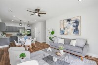 Step inside this beautifully updated 3-bedroom, 2.5-bath home offering over 1,700 sq. ft. of modern living in a prime Charlotte location. The bright open floorplan features new flooring, stylish lighting, and a spacious living and dining area that flows into a beautifully updated kitchen with a large island, granite countertops, stainless steel appliances, and modern cabinetry. Upstairs, the generous primary suite offers ample closet space, and a refreshed en suite bath with a tiled shower and dual vanity. Two additional bedrooms and a full bath provide flexible space for guests, work-from-home needs, or family. A convenient main-level half bath adds function for everyday living. The fenced backyard offers room to relax, garden, or play, with plenty of opportunity to personalize outdoor living. Located minutes from Uptown Charlotte, Bank of America Stadium, Truist Field, Camp North End, Revolution Park, and quick access to I-85, I-77, Hwy 74, and CLT Airport, this home combines modern updates with unmatched convenience.