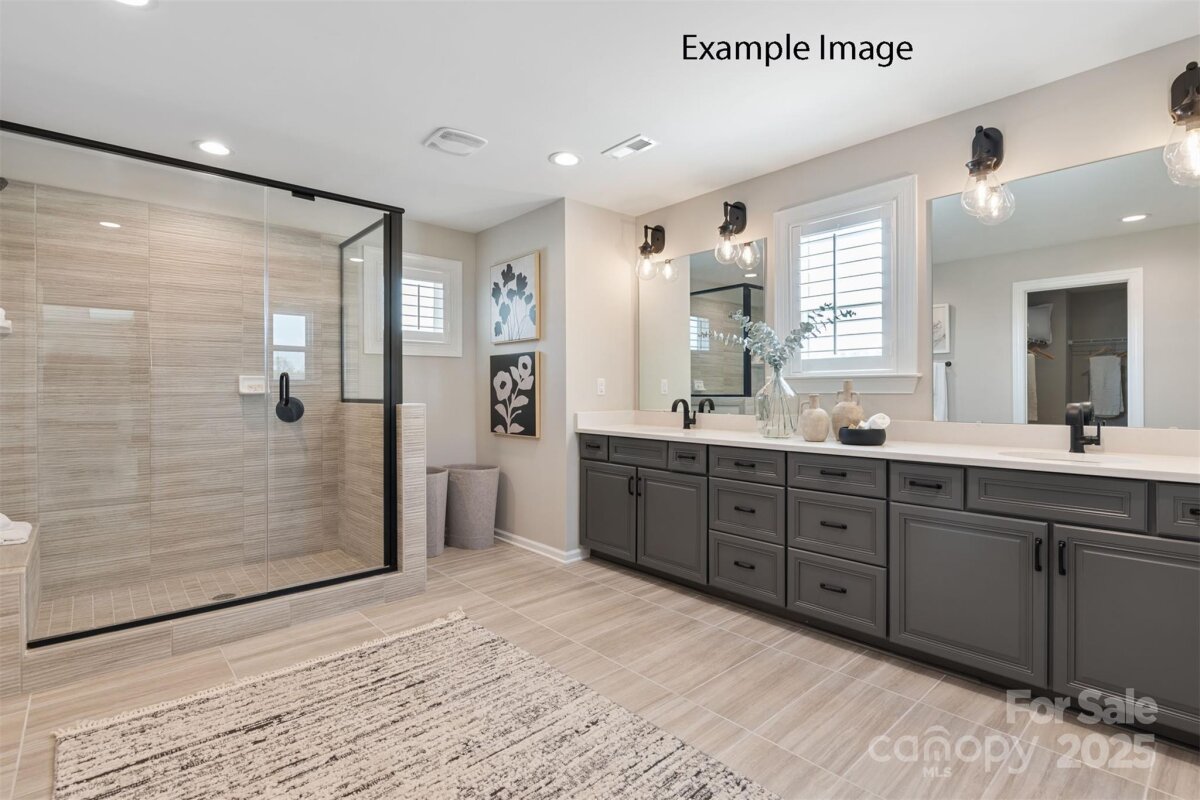 Welcome to this new home in Gastonia situated on a level homesite, minutes from I-85, the local YMCA, and shopping and dining. The exterior features painted Hardie® cement siding and 25-year shingles, and inside is an open layout with abundant windows. Off the foyer is a guest bedroom and full bath with walk-in tiled shower, plus a Flex room. The Family room has a gas fireplace flanked by niches, and it easily flows to the kitchen and breakfast area. The star of the space is the large Kitchen, complete with painted upper cabinets and stained cabinets at the island and lower cabinets, granite counters, tile backsplash, and GE stainless steel split cooking appliances with a 36" Profile gas cooktop, extraction hood vented outside, and Profile wall oven and microwave. Tucked off the kitchen is a mudroom and walk-in pantry. The Breakfast area leads to the large rear covered patio, which has a 6' patio extension for enjoying our beautiful Carolina weather. Upstairs is a luxuriously large Premier Suite with tray ceiling; the huge walk-in closet has two entries, and the spacious bathroom features a large tiled shower with semi-frameless glass and shampoo niche, 12" x 24" tiles, quartz counter, stained cabinet, and tiled floor. There is also a large Rec Room, and two bedrooms share a Jack and Jill bath. At the top of the steps is a little nook to add a reading area or desk/homework station. Secondary baths include quartz counters and tiled floors. LVP flooring is throughout most of the first floor, with oak treads on the stairs. Community pool and tot lot!
