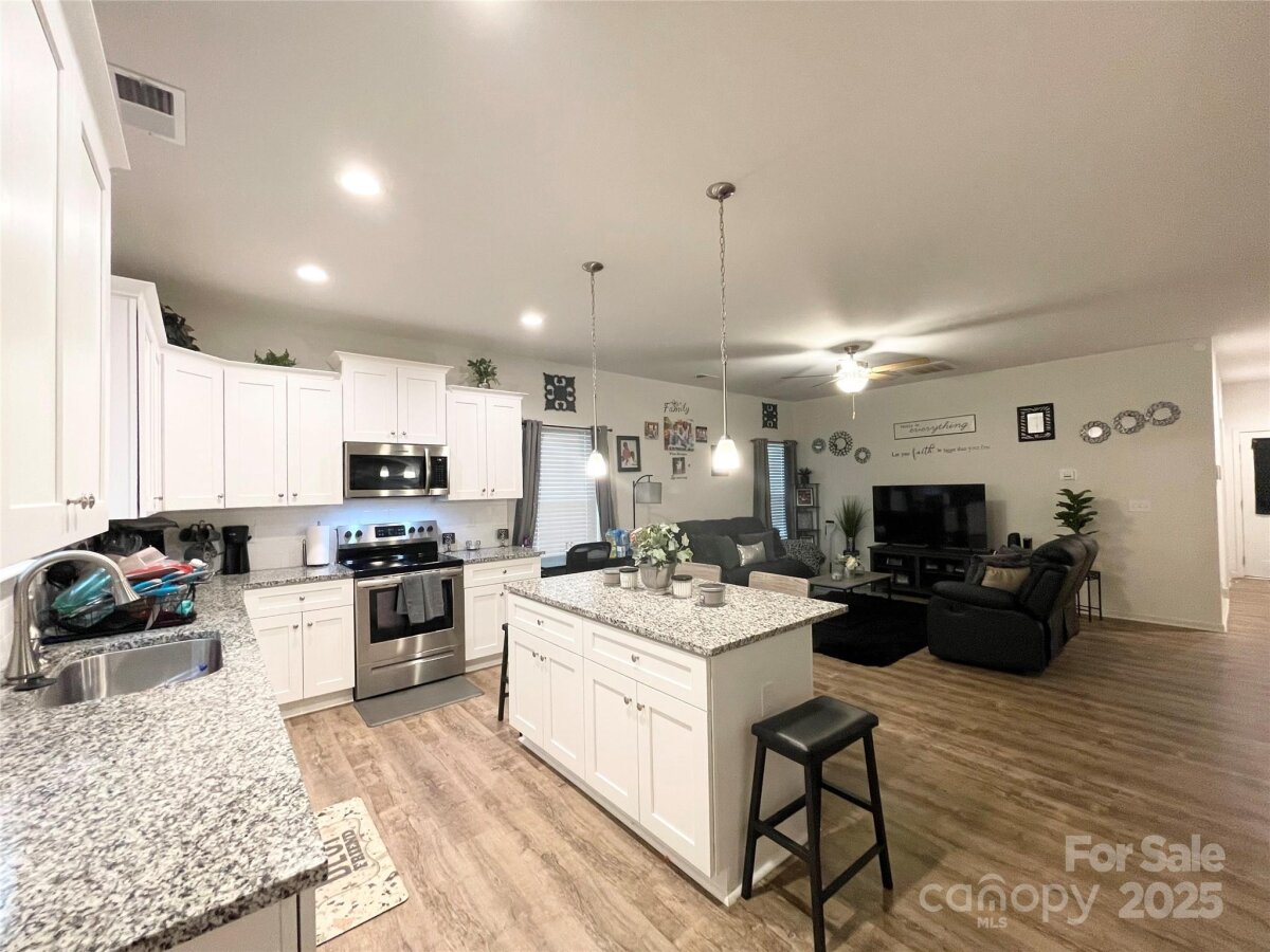 Come and check out this beautiful home. This home has to offer 3 Bedrooms, 2 Full Baths. You will walk into an open layout with a spacious kitchen with gleaming stainless appliances with white cabinetry, granite countertops, pantry, a large island with pendant light and recessed lighting that flows into the living room. Primary bedroom with trey ceiling and dual vanities in primary bathroom. There has also been added a water filtration system. You will walk outside to a wooded lot with a shed for storage. Come and make this your home!