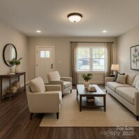 Brand New Construction – Built with You in Mind! This stunning home features an open, split floorplan perfect for entertaining and comfortable everyday living. The spacious living room welcomes you with abundant natural light, flowing seamlessly into the large kitchen with bright white cabinets, tile backsplash, eat-at island, stainless steel appliances, and plenty of recessed lighting. A large laundry room with extra closet space and pantry adds convenience. The primary suite boasts a walk-in closet and a luxurious bathroom with quartz countertops, LVP flooring, walk-in shower, and striking black hardware. Additional bedrooms are generously sized with double closets. Enjoy relaxing on the rocking-chair front porch or take advantage of the large driveway for easy parking.