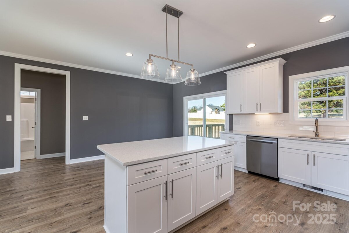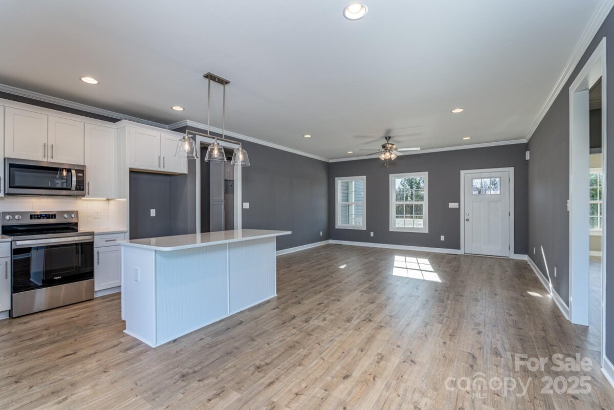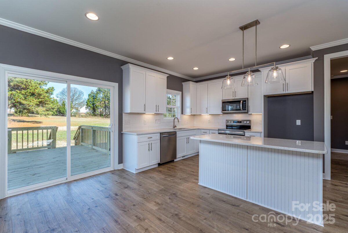 This new construction, one level home sits on a little over an acre lot and is ready for you! With plank flooring throughout, it features three bedrooms and two full baths. The family room, dining area, and kitchen are open and provide great entertaining space. Enjoy preparing your meals in the kitchen with wh ite cabinets, quartz countertops, stainless steel appliances, and a nice island. In addition, there is a separate pantry. The primary suite features a walk-in closet and a bathroom with double vanity and tile shower. The split-bedroom plan has two additional bedrooms and a full bath. A "drop zone" and laundry room complete this home that utilizes every square foot. A nice deck overlooks the spacious back yard where you have an open slate for your outdoor vision. Enjoy the benefits of an attached garage - especially on those cold, rainy mornings!