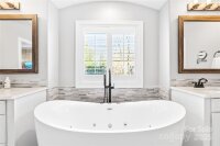 Excited to offer this beautiful 5-bedroom, 4.5-bath home in the highly sought-after Anniston subdivision to be your new home! The primary bedroom on the main floor features a jetted spa shower, his and hers custom closets & Carrera marble vanities. This posh open kitchen concept furnishes soft-close cabinets, quartz countertops, a farmhouse sink, a very advantageous walk-in pantry with wood shelving and Butler's Pantry that leads to the formal dining room. A MUST SEE oversized flex room having laundry, a sink, and built in desk space with entry from the garage/drop zone or side of the house a convenience not found in many homes. From the kitchen see your spacious, natural lit breakfast area that provides a wood-burning fireplace and living room furnishing a convenient gas log fireplace. Glass sliding doors lead to a wonderful flagstone screen porch overlooking your private backyard, along with a gorgeous lap pool and spa. The upstairs loft allows for a study area with built-in desk space, bookshelves and cabinets. Additionally this generous space offers a large bonus/media room with even more built-ins, wine fridge, half bath and an extended bonus/bedroom area. A private ensuite bedroom with walk-in closet along with two bedrooms who share a Jack-and-Jill bath finish out this sizable second level.