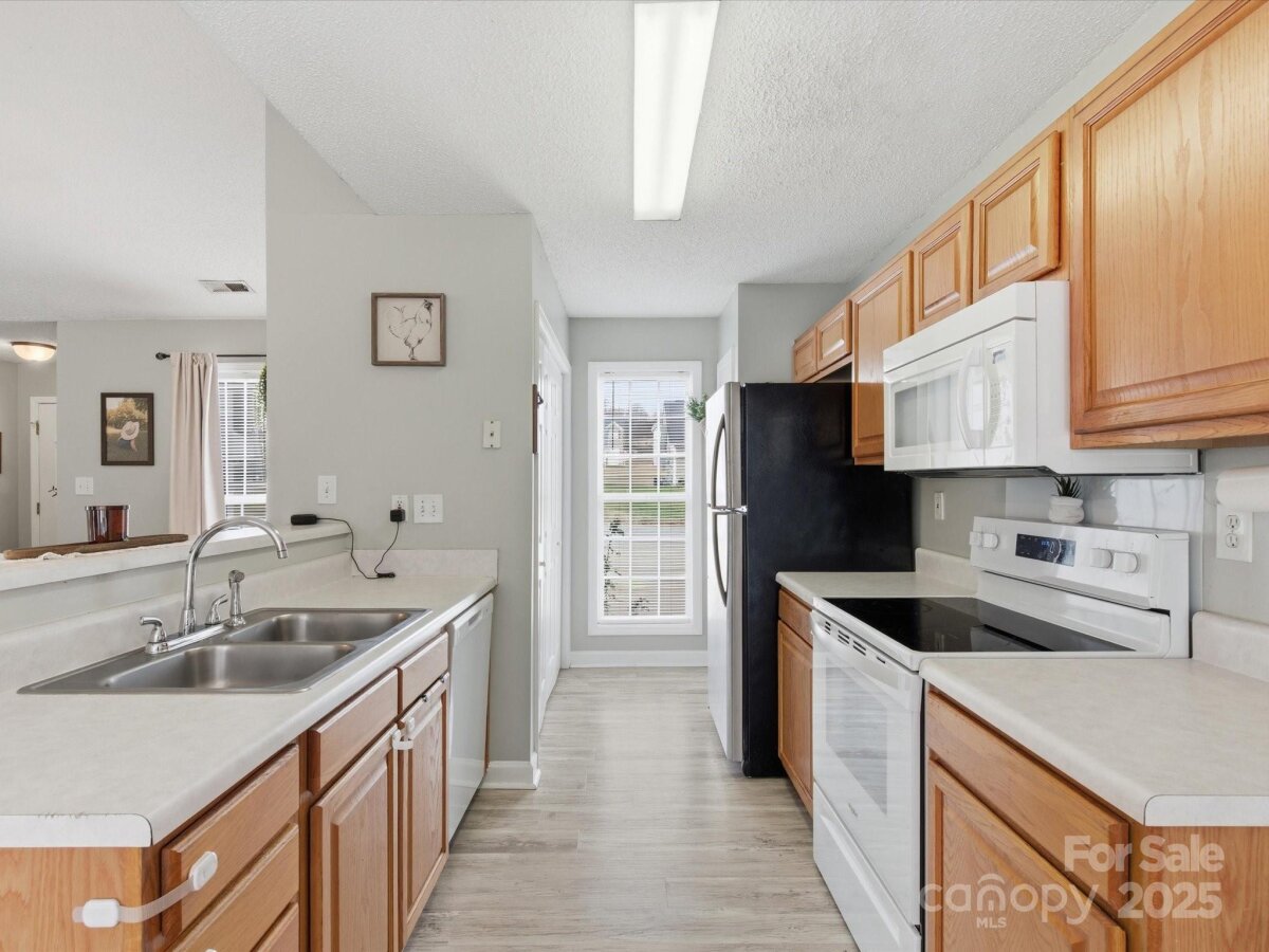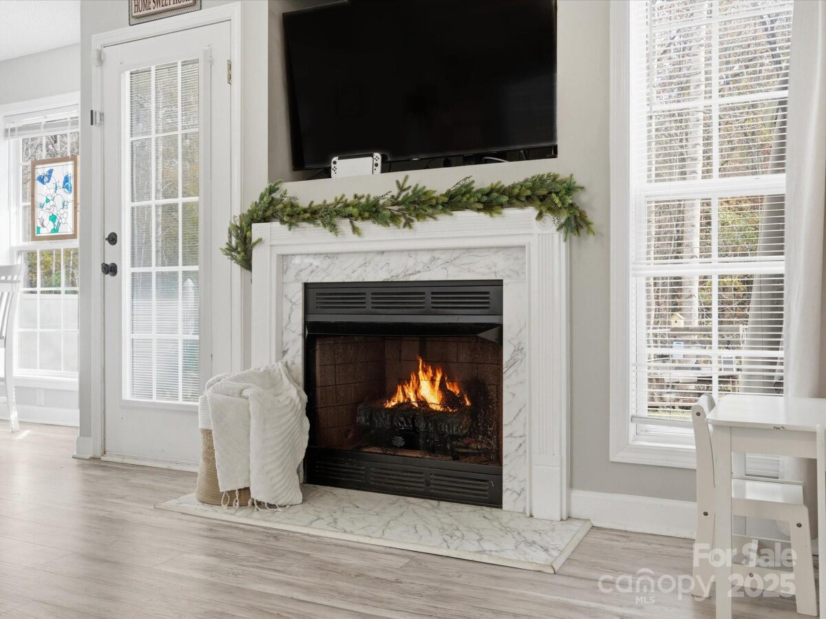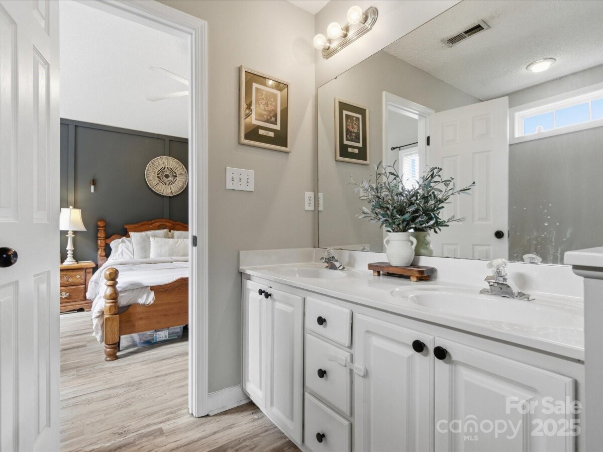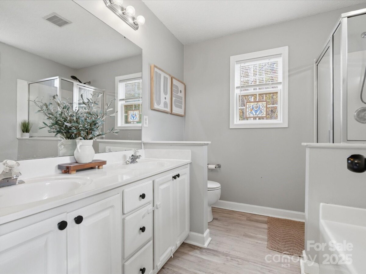 Welcome to this stunning 3 bedroom/ 2 bath home located on a cul-de-sac street. From the moment you enter you will notice the perfect layout and neutral esthetic...move in ready! The fireplace is the focal point of the main living area. Eat- in kitchen with a beautiful kitchen. The primary bedroom is a GREAT size and offers a large walk-in closet. The primary Ensuite has a soaking tub, shower, AND a double vanity sink. Secondary bedrooms separate from the Primary creating privacy. Outside is semiprivate with a tree line and the back. Fully fenced! Great patio space for entertaining. Location could not be better! A short distance to 85!