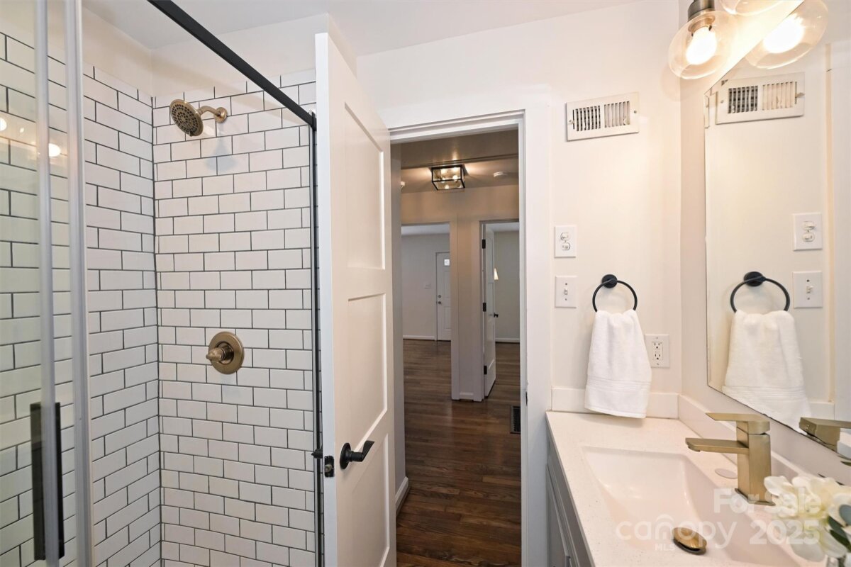 Completely renovated in 2021— taken down to the studs to create a seamless open flow through the main living area PLUS adding a rare 2nd FULL bath. This 3-bedroom/2-FULL bath Marsh Estates/Historic Camp Greene home features real hardwoods throughout. ALL new stainless steel Whirlpool appliances (2025). EVERY single fixture and finish was NEW in 2021 including ALL new electrical, plumbing, cabinetry, tile, hardware, and lighting. It even has MARBLE countertops, custom solid shelving closet systems, and custom plantation blinds you won’t find in other homes in the area. Additional upgrades include new roof (2025), HVAC (2021), and Dry-Pro sealed crawl space (2016) with dehumidifier. It features a charming covered porch perfect for a hanging chair swing, a rear patio, and brick-fenced backyard for added privacy. Recently installed sod with timed automatic sprinklers. Shared driveway with additional private parking pad. ALL this AND located in an opportunity zone with no HOA, this home is ideal for investors or owner-occupants alike. It’s just minutes west of Uptown and Panther’s Stadium in the heart of lots of trendy new restaurants plus it’s convenient to I-77 and I-85.