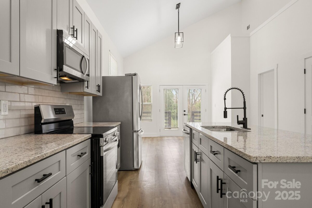 Beautiful UPDATE HOME Ready for you! All the perks of a New Build without the New Construction price! Walk up the front deck into the home onto LVP throughout the main living areas and vaulted ceilings! OPEN floorplan with great sightlines between the Great Room, Kitchen, and Dining Area. Kitchen is NICE! Granite countertops, SS Appliances, and HUGE kitchen island with bar seating! Walk out the French Doors off the Dining Area onto the vast back deck perfect for entertaining! The Primary Suite is AWESOME- BIG room with separate entry onto the back and STUNNING ensuite bath featuring large dual granite vanity and custom walk-in tile shower! Both guest beds are ample in size and share the additional full bathroom w/single granite vanity and tub/shower combo. Boasting high ceilings throughout, this house will feel like home in no time! AWESOME Circular Driveway for your convenience! Come see this one today!