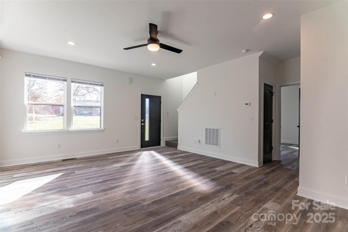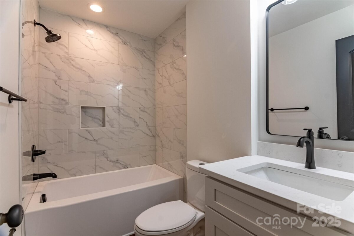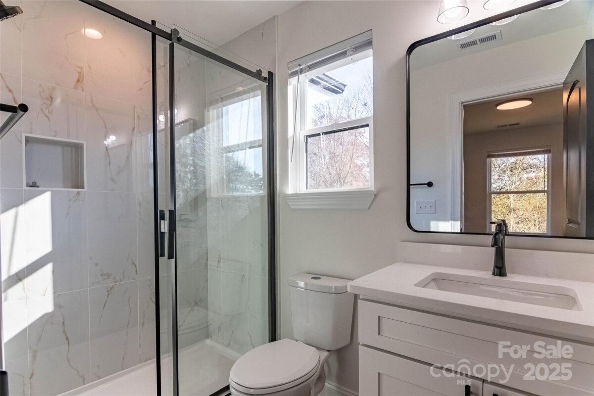 Modern New Construction in Brittain Village – Shelby, NC! Welcome to this beautifully crafted 4-bedroom, 3 1/2-bath contemporary home offering standout design, premium finishes, and turnkey convenience. Situated on a large open lot, this home features a sleek modern exterior, a large concrete driveway, and clean architectural lines that immediately set it apart. Step inside to a bright, open-concept layout highlighted by luxury vinyl plank flooring, recessed lighting, and abundant natural light pouring through oversized windows. The spacious living area flows seamlessly into the showpiece kitchen—complete with quartz countertops throughout the entire home, all-white soft-close cabinetry, stainless steel appliances, and a striking herringbone tile backsplash. This exceptional floor plan includes two primary suites, each with its own private bathroom. Every bathroom in the home showcases modern, custom tile work, matte black fixtures, quartz vanities, frameless or sliding glass shower doors, custom shower niches, and high-end lighting. One upstairs primary bath even features dual sinks and a large quartz vanity. Upstairs, you’ll find additional bedrooms, a wide hallway landing, and beautifully finished spaces perfect for family, guests, or a home office. Step out the back door onto the rear deck—ideal for grilling, relaxing, and enjoying the privacy of the open backyard. With a flat and usable lot, there is endless potential for outdoor living. This home offers a perfect blend of function, beauty, and modern craftsmanship. A true turnkey opportunity in the heart of Brittain Village!