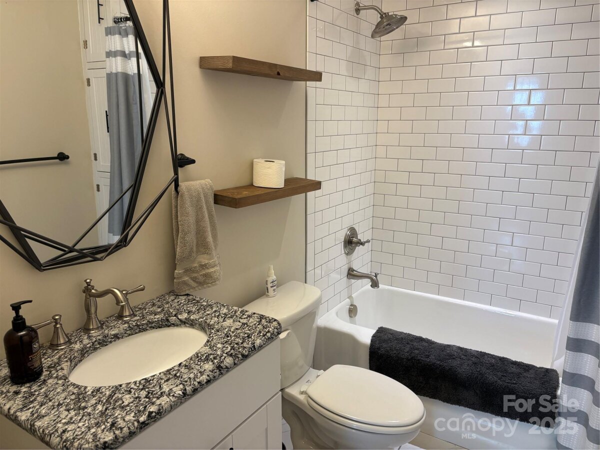 Don't let this recently renovated gorgeous, one story, 2 Bedroom, 2 Bath home slip by! Located within walking distance from Downtown's lively shopping, dining and entertainment options, including the new Cannon Ballers baseball stadium. Open floor plan with living room & kitchen together. Recessed lighting throughout. Beautiful kitchen with white cabinets, subway tile backsplash, and granite countertops. Enjoy privacy in the Master Suite, which boasts a barn closet door, white vanity, granite countertops, and custom beautiful tile shower. Appliances include microwave, stove top oven, dishwasher, refrigerator, stacked washer and dryer. Brushed nickel fixtures throughout home. Hardwood flooring thru the entire home including bedrooms, no carpet! Rear exterior includes fenced-in backyard, large deck, and storage building with custom shelving. Newly installed gutters with leaf guard. Perfect home for small families, first time home buyers or anyone seeking convenience and comfort in downtown Kannapolis. Book your showing today!