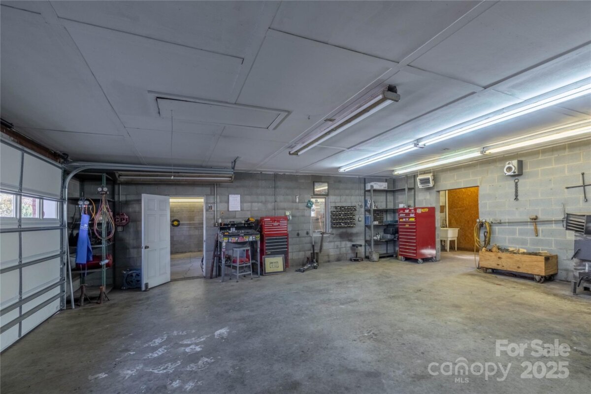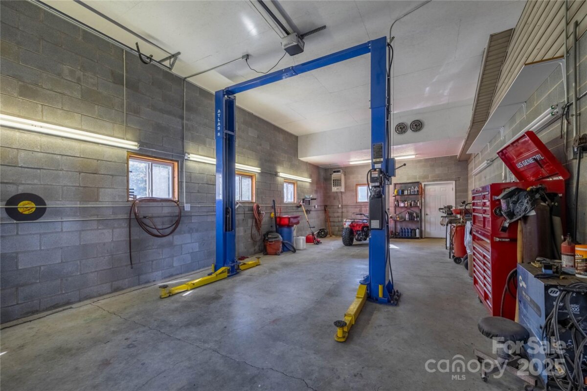 Welcome to this charming property that offers 7 garage spaces! It’s a perfect blend of comfort and functionality. Featuring an abundance of space, this home is ideal for those seeking room to grow! With loads of parking available, you'll find both a spacious workshop and a detached garage, providing ample room for hobbies or projects. It also includes the car lift and a 7 horsepower air compressor. It's heated by a propane unit and wood stove. The inviting sunroom at the back of the house offers a serene spot to relax and enjoy the views of the beautifully landscaped yard. Inside, the living room boasts stunning wood ceilings and a cozy stone fireplace, creating a warm atmosphere for gatherings. The kitchen is well-appointed, featuring stainless steel appliances and ample cabinetry for all your culinary needs. This home is situated on a generous lot, surrounded by nature, making it a peaceful retreat while still being conveniently close to local amenities. Don't miss the chance to make this beautiful residence your own!