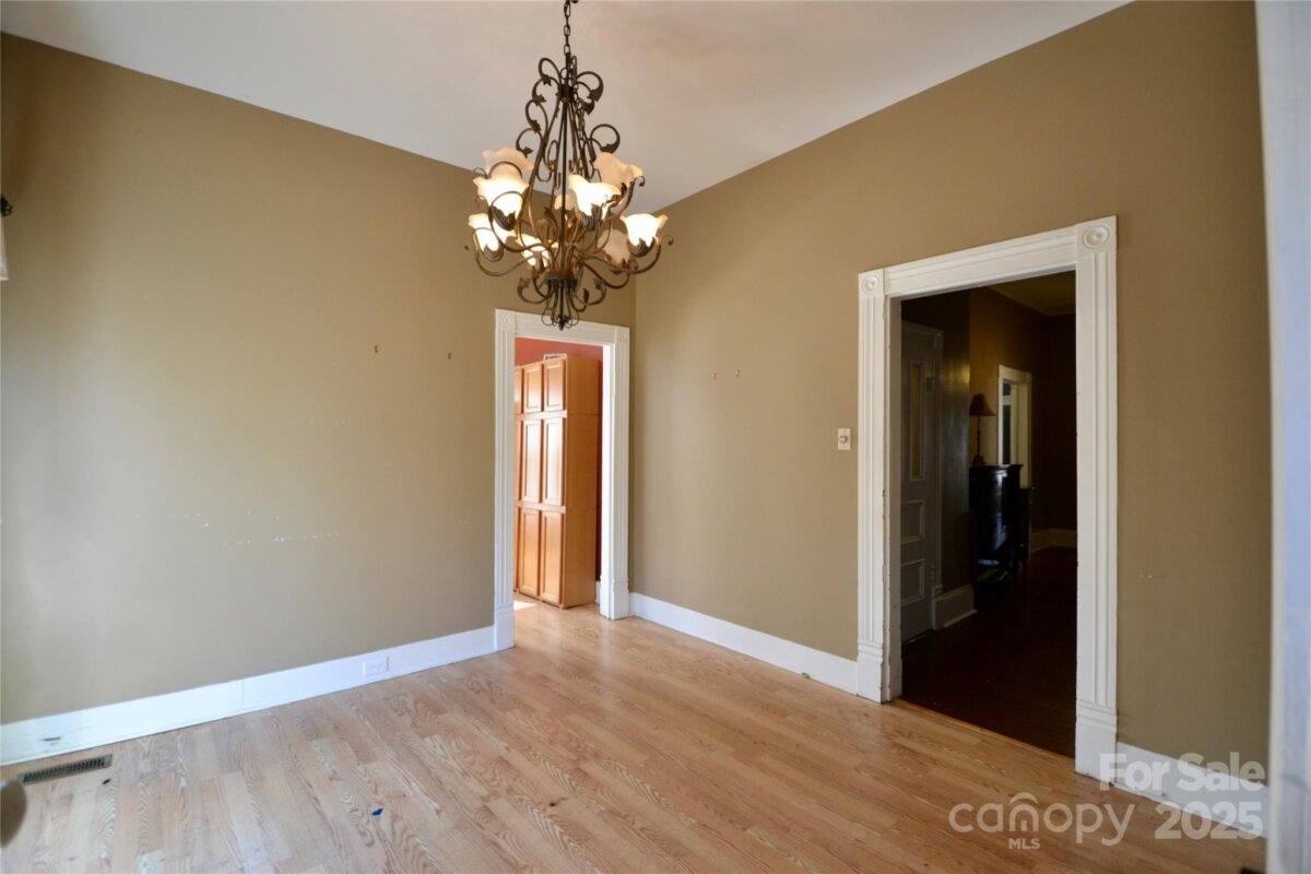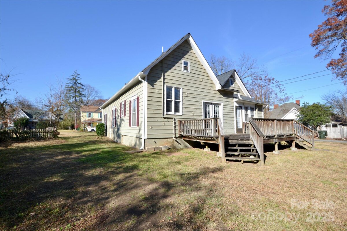 Southern charm and character abound in this spacious home set on two lots with beautiful curb appeal and a welcoming wraparound front porch. A tree incident several years ago led to a renovation of the front two rooms, including new windows, flooring and front half of the roof (entire roof had been replace approx 6-8 years prior). Hardwoods throughout most of the home. Third bedroom could be used as an office/flex room (no closet). New instant water heater was installed earlier this year. Offering generous square footage and abundant potential, this property is ready for your vision. At time of listing, some water was noted in the cellar/unfinished basement; seller has since installed a new sump pump and added a cover over the exterior steps. Rear deck is weak—please use caution. Home is priced well below tax value and is being sold As-Is.