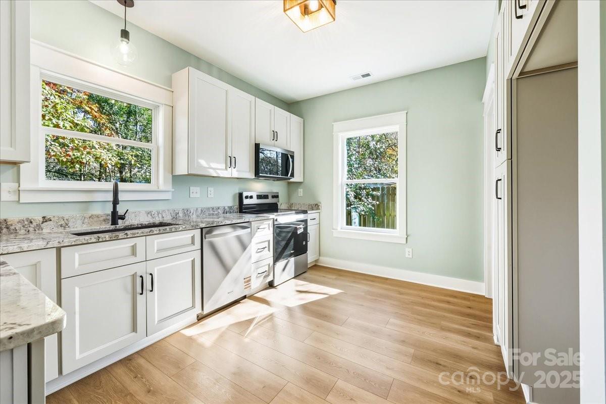Welcome home to this stunning new construction two-story residence perfectly situated in a quaint neighborhood near the newly revitalized Downtown Kannapolis. Designed for modern living, this home features an open-concept main level that seamlessly connects the living and dining areas—perfect for gatherings and entertaining. The gourmet kitchen showcases shaker-style cabinetry, soft-close drawers, pantry cabinet, granite countertops, a spacious peninsula for casual dining, and stainless-steel appliances, all complemented by durable LVP flooring that flows throughout the main level. Upstairs, retreat to the primary suite complete with a luxury ensuite bathroom featuring a beautifully tiled shower. Two additional bedrooms and a full hall bath provide plenty of space for family or guests. Enjoy the best of convenience and lifestyle—just minutes from the Kannapolis Cannon Ballers Ballpark, downtown boutiques, restaurants, and local breweries. Explore The Loop, catch a movie at the historic Gem Theater, or take advantage of the nearby Amtrak station for easy travel options.