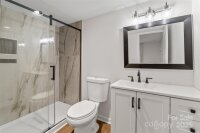 Beautifully renovated home combining comfort, style, and functionality with modern updates throughout. The spacious great room flows effortlessly into the upgraded kitchen, perfect for entertaining or everyday living. The main-level primary suite provides a private retreat, complete with an ensuite bath featuring a walk-in shower. A second main-level bedroom at the rear of the home is ideal for guests or a home office, conveniently situated near a second full bath, the kitchen, laundry room, and a new back deck. Upstairs, you’ll find two generously sized bedrooms with easy access to a third full bath featuring a tub/shower combo. One bedroom even has direct access to the hall bath. Major updates include a new roof, gutters, and downspouts (2022), vinyl siding, HVAC, updated plumbing to the street, and electrical (2022–2023). Interior enhancements feature luxury vinyl plank flooring, white cabinetry, quartz countertops, an oversized tile backsplash, and new stainless steel appliances—including refrigerator, range/oven, dishwasher, and disposal. Enjoy quiet mornings on the charming front porch or unwind in the spacious backyard retreat. Subject to Short Sale.