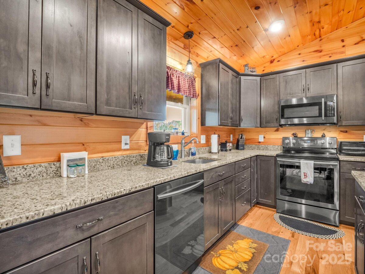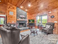 Welcome home! This beautiful log sided home located in the very desirable gated community Hearthstone Ridge has so much to offer. First time on the market, this home is well maintained. Once you enter the front door you will find an open concept, perfect for entertaining. The living room has a 42" woodburning rock fireplace, vaulted ceiling, hardwood floors. The kitchen has granite countertops with tall custom cabinets for extra storage. Sliding doors from the dining area leading out onto the covered porch which extends the entire length of the home. In the primary suite which also has sliding doors leading to the back porch, there is a walk-in closet, ceramic tile bathroom has jacuzzi tub, separate shower, double sink granite vanity. The second bedroom has hardwood floors with plenty of closet space. Bathroom is located in hallway also has granite top vanity and shower. Laundry room is spacious and has a door leading onto the back porch. Downstairs in the basement is the third bedroom currently being used as a multipurpose room. Rough in plumbing ready for a bathroom to be completed. Storage room in basement. The oversized double car garage is big enough for cars and storage. Don't forget about the outside detached 12 X 24 shed with electricity ran to it. This beautiful home sits on 4.6 acres of beauty! Located close to Hwy 221, Interstate 40 and I-26. You are close enough to restaurants, shopping and entertaining but in a secluded setting. This home will not last long!