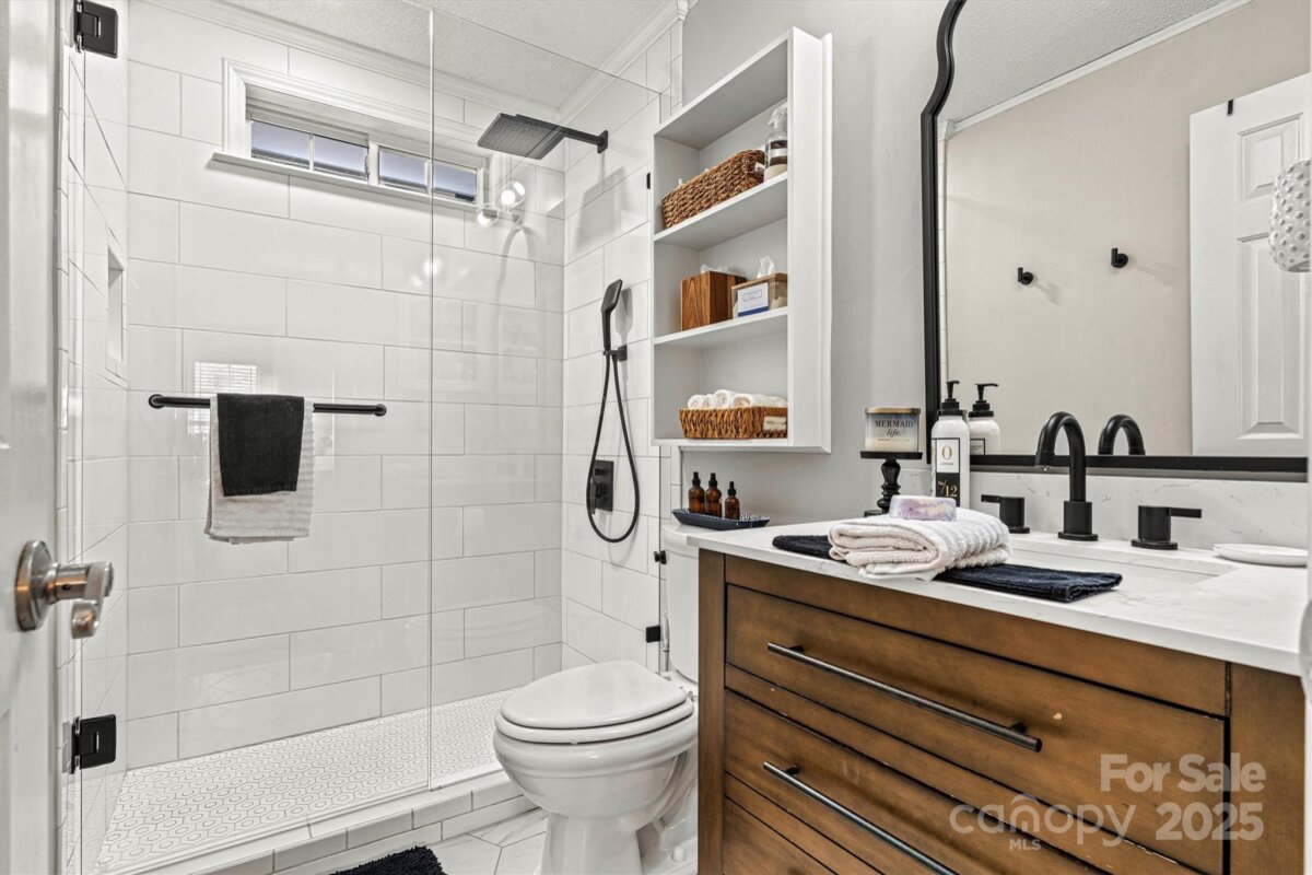 Don't blink! You don't want to miss out on this move-in ready home that beautifully showcases pride of ownership. This home has not only been meticulously maintained, but also thoughtfully renovated to reach its full potential. With vaulted ceilings and a strategically designed floor plan, the space feels impressively large and inviting. Centrally located, the living room is flanked by the two bedrooms, each boasting stunning private ensuite baths and custom walk-in closets. The kitchen is nothing short of amazing, featuring quartz countertops, a farmhouse sink, updated cabinetry, and new stainless steel appliances. Additional kitchen highlights include modern lighting fixtures, a sleek faucet, and a subway tile backsplash. Other notable renovations and updates include a new roof, interior repainting, luxury vinyl plank flooring, and a completely renovated primary bath. Both bedroom walk-in closets have been upgraded with custom designs, and custom blinds have been added throughout the home. Additionally, you'll find a Rinnai tankless gas water heater, updated second bath, refinished rear deck, new shutters, Leaf Filter gutter guards, new gas furnace with a smart thermostat, and a unique built-in, hidden laundry area. Outside, you'll appreciate the two-car attached carport with an enlarged concrete driveway, 16'x16' rear deck, and wired 10'x10' storage building, perfect for all your projects. The yard is professionally landscaped, featuring mature trees and vibrant shrubbery that add a burst of color in the spring. Refrigerator, washer, dryer, ring doorbell, ring outdoor security camera w/floodlight & solar string lights on deck will convey with an acceptable offer. Plus, there’s no HOA! Easy access to Hwy 16 for a quick commute to Charlotte or Hickory & CLT Airport is a 25 minute drive. Showings begin with Open House on Saturday, Nov 29th from 12-2pm.