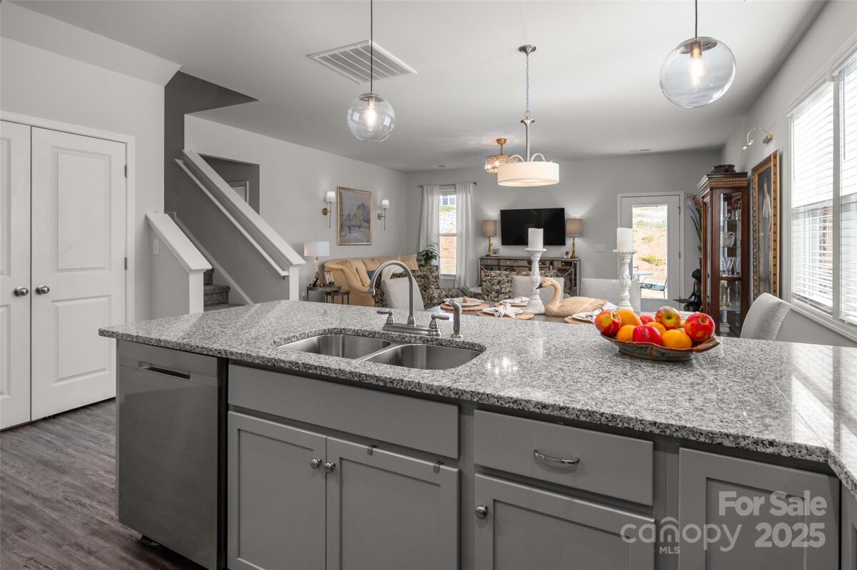 Welcome to this inviting 4-bedroom, 3-bath home in the desirable Kinsley Community! The primary suite is located on the main level and features a spacious bath and walk-in closet. A second main-level bedroom is currently used as a home office but offers flexible use as a guest or flex room. The open floor plan includes a large living and dining area and a kitchen with a breakfast bar, ample counter space, and plenty of cabinets. The laundry room and a second full bath are also conveniently located on the main floor. Upstairs, you’ll find two spacious bedrooms and a full bath, ideal for family or guests. Enjoy low-maintenance living—lawn care and trash is included in the HOA!