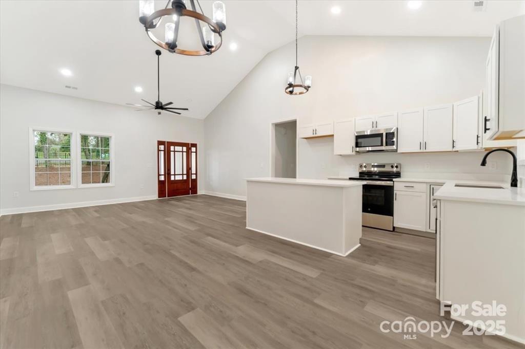Welcome to your dream home in Bessemer City! This new construction gem features 3 bedrooms, 2 full bathrooms, and sits on a sprawling .70-acre lot. Enjoy the spaciousness and airy feel with high ceilings throughout. The open floor plan seamlessly connects the living, dining, and kitchen areas, boasting quartz countertops, a large kitchen island, and modern finishes. Step outside to your private retreat perfect for cozy gatherings. Relax on the large back porch or sip coffee on the charming front porch, both offering serene views of the lush surroundings. With spacious closets, a large laundry room, and a beautiful backyard with ample trees, this home offers both luxury and tranquility. Don't miss out this Amazing Gem!!!