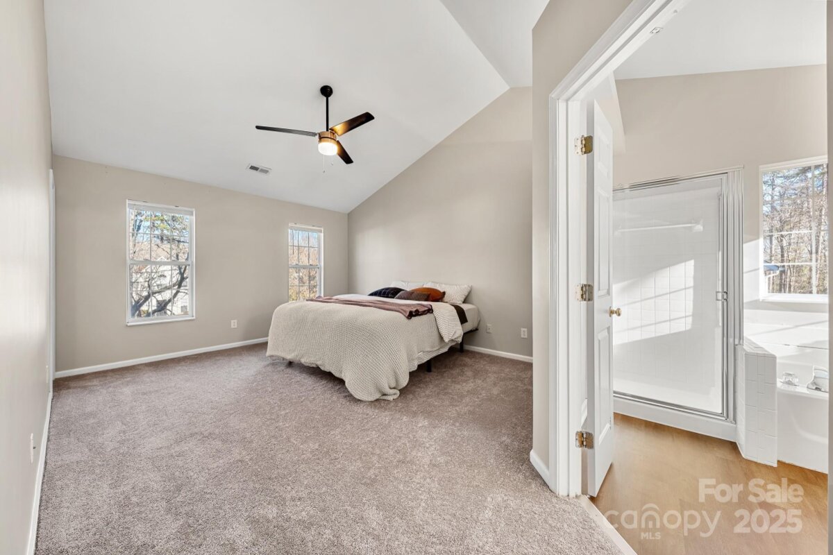 Located in the Sherbrook community and on a quiet street that ends in a cul-de-sac, this property is ready for its next owner! Starting on the exterior, find mature trees, 2-car attached garage rear patio, and a fully-fenced backyard with a shed! Step inside and find inviting hardwood floors in the entry foyer, formal dining room with wainscoting, flex space perfect for home office, and a nice-sized living room with an inviting wood burning fireplace! New carpet throughout the home, breakfast nook for casual dining, and an ideal kitchen - two tone cabinets, tile backsplash, and stainless steel appliances. Upper level has oversized bonus room that can be a fourth bedroom, guest bathroom with tub/shower insert, and an oversized master suite with vaulted ceilings, walk-in closet, and large connected bathroom with dual vanities, soaking tub, and walk-in shower! Solar panels reduce the utility cost with the house. And a perfect location - close to golf, parks, dining, shopping, Uptown, and quick access to highways!