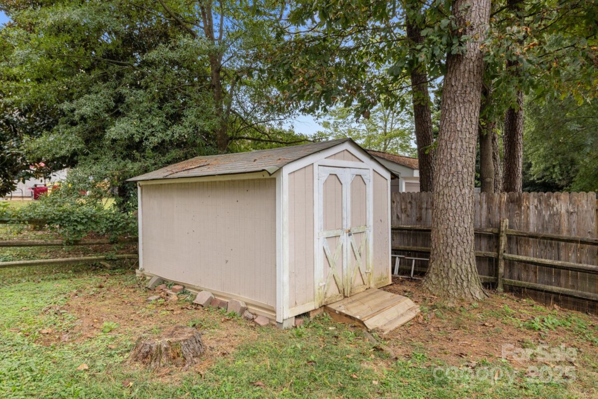 Nicely Updated 3 Bed 2.5 Bath Home on .23 Acres tucked away in Morris Village...Great Location w/No HOA! Mint Hill Vibe w/Charlotte address offers affordable living with low taxes and shopping just around the corner, nice connect to Matthews, plus it's approx. 10 miles to Uptown Charlotte! Brand-New Gas Furnace/AC installed Sept. 2025, ensuring peace of mind and energy savings for years to come. Low maintenance equals less stress on your budget & makes for an excellent investment opportunity for you! Wow! What-a-Kitchen! Spacious Eat-In Kitchen is a great place to start your day w/natural light flooding through several windows and heavy Sliding Glass Doors (New Vertical Blinds just installed Oct.'25). Enjoy Smooth Ceilings, LVP Flooring, Granite Countertops (love that Backsplash!), and Quality Stainless Steel Appliances w/2024 SS Samsung Fridge. 2025 Whirlpool Front Load Washer and older Dryer included in the connecting Laundry Room w/Ceramic Tile, ample Shelving, and a self-standing Cabinet for storage. The Vaulted Ceiling in the Primary Suite adds breathable space and a modern touch. Feel the warmth and smell the wood burning in the Fireplace w/a traditional Raised Brick Hearth. Prefinished Hardwood Flooring and included TV above the mantel completes this Cozy Living Room. Entry Way includes a Coat Closet...It's the little things! Smart and Functional Floor Plan...Stairwell to the back adds perfect Feng Shui, plus an outside entry, Insulated Utility Room w/an older Gas Water Heater. Mature Trees, Relaxing Rocking Chair Front Porch and Spacious Fenced Backyard w/Tool Shed. Backyard has plenty of room for large gatherings! Architectural Shingles(2010). Windows replaced several years ago, (?) install date. Exterior Vinyl Siding placed over Masonite Siding several years ago, (?) install date. Personal items to convey...Refrigerator, Washer, Dryer, Outside Shed, Outside Hanging Lights, Black Closet Cabinet in Laundry Room, TV over Fireplace, and Satellite Dish. Morris Village is an extended community built by Squire Homes. This home has been well cared for by the same owner since 1993. Move-in Ready! Update window treatments and paint to your liking as you go. Schedule a showing today and see if this feels like home to you. Bring your offer and change your life!
