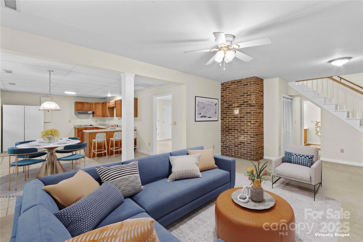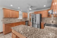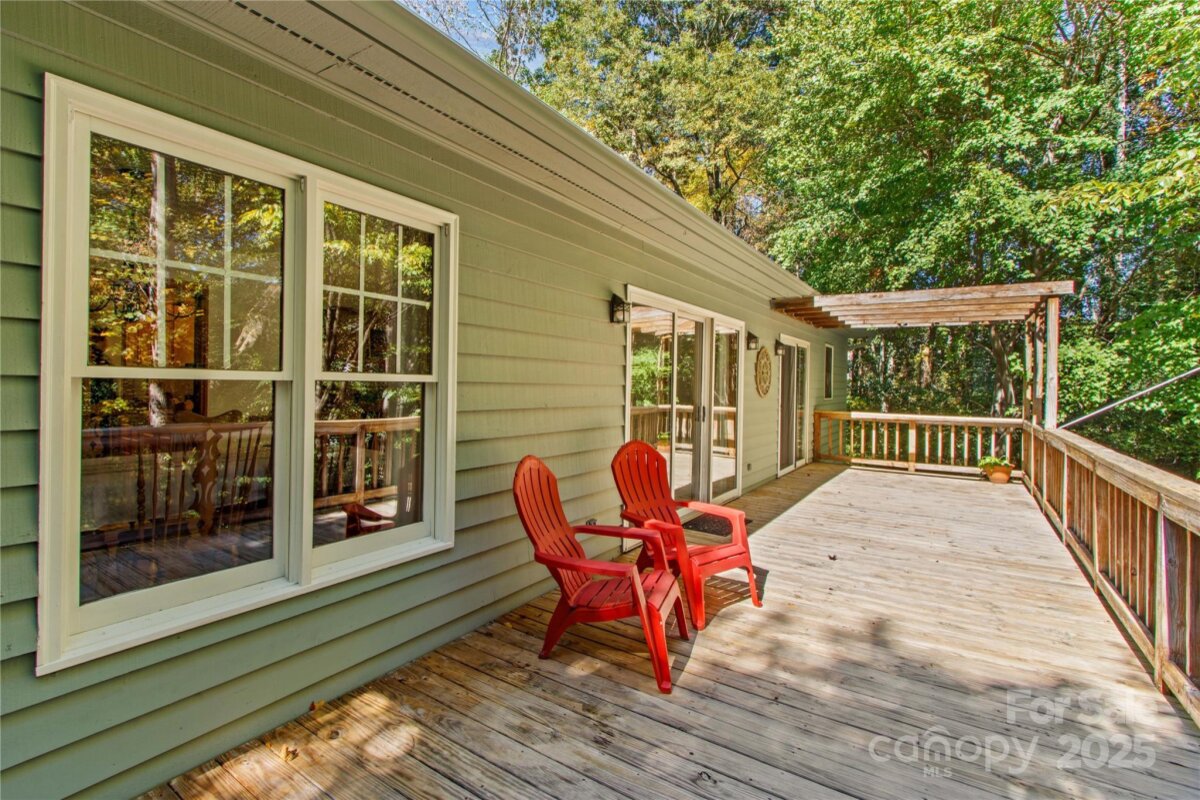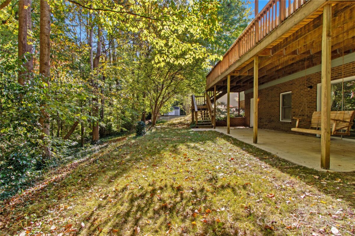 Love where you live! The location and charm of this home are unparalleled. This ranch home with walk-out basement is nestled under a canopy of trees, exuding breathtaking colors & the feel of nature surrounding. A short walk into downtown Mooresville or taking in the Friday Night lights of Mooresville High School football games, all is just a stone's throw away. Sitting on the back deck overlooking the rear tree line abutting a small creek, you will feel like you have been transported into the NC mountain region. If multi-generational living is what you are looking for, this could be the home for you. The main level features a primary suite with deck access, dual walk-in closets, soaking tub and updated step-in shower. As well, there is another bedroom, full bath and designated office on the main. The kitchen features granite counters, stainless appliances and a bay-window overlooking the lush front yard. The large great room with wood burning fireplace and dining room flow easily together for entertaining purposes. LVP flooring throughout the main-level living areas and new carpet in the bedrooms. Downstairs welcomes you with 9 foot ceilings and another kitchen and living area. As well, there are 2 additional bedrooms and a full bath, flex room with dual walk-in closets as well as a private patio. Dual laundry hook-ups for each level of the home and tons of storage throughout. This is a custom-built home that has never changed hands and has been lovingly cared for over the years. In preparation for the new owners, it has been freshly painted inside and out. From the rocking chair front porch to the tree-lined rear landscape, the charm exudes. If you're looking to make Mooresville your home with walkability to festivities, shopping and all the restaurant options the town has to offer, come take a look at this charmer!